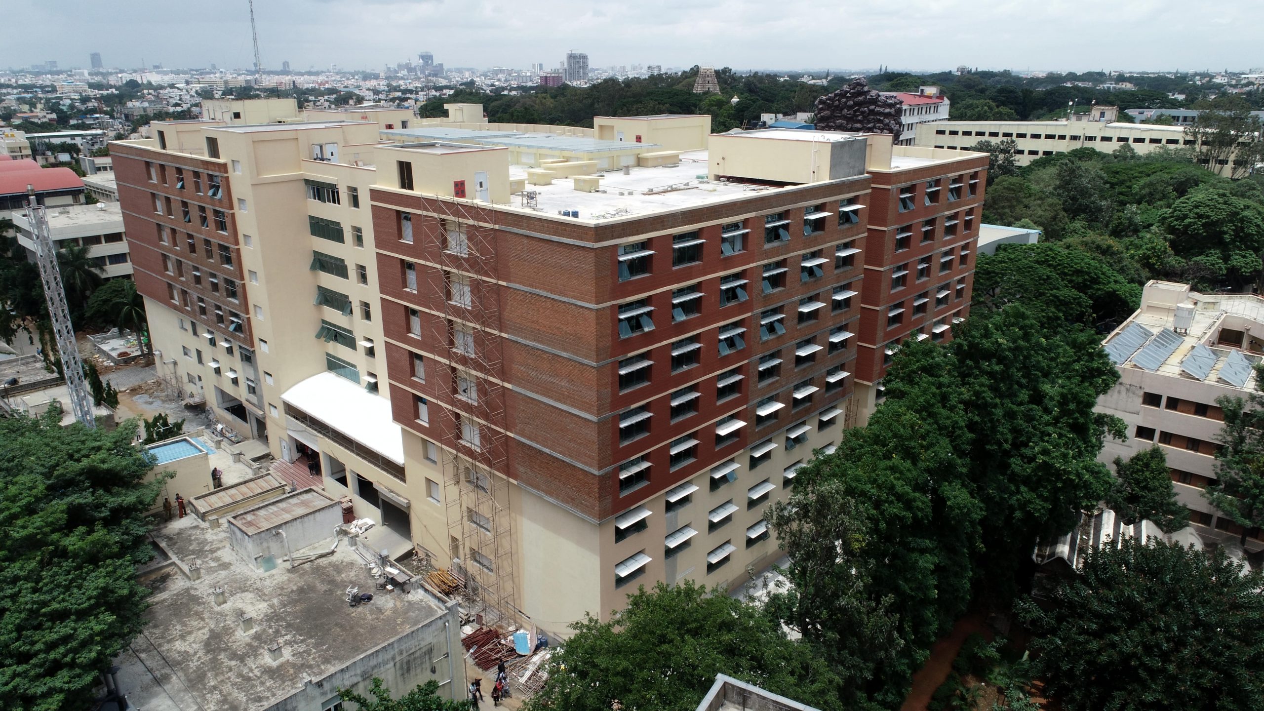 Integrating a horizontal louvre system within the punch window and lighting in the spider glazing. We achieved this with our engineering capabilities and now stands as a landmark building at Mangalore.